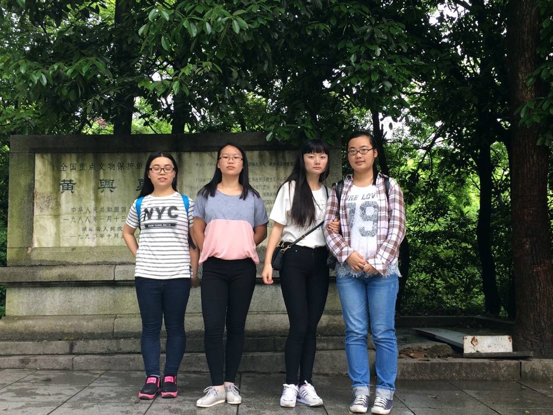 应用化学1401班全体同学在微风细雨中踏上寻找岳麓山故事的旅途。