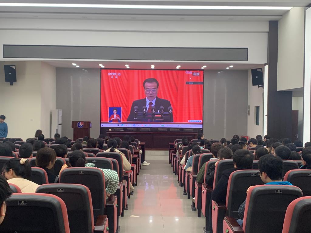新化工楼D区报告厅集中观看第十三届全国人大五次会议开幕会直播。