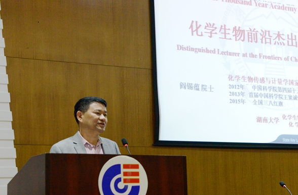 2017年10月17日,应化学生物传感与计量学国家重点实验室谭蔚泓主任邀请,电子竞技 生物物理所研究员、博士生导师阎锡蕴做客“千年学府论坛--化学生物前沿杰出学者讲座”,作题为“发现纳米酶背后的故事”的学术讲座。副校长谭蔚泓主持讲座,全校200余名师生参加。