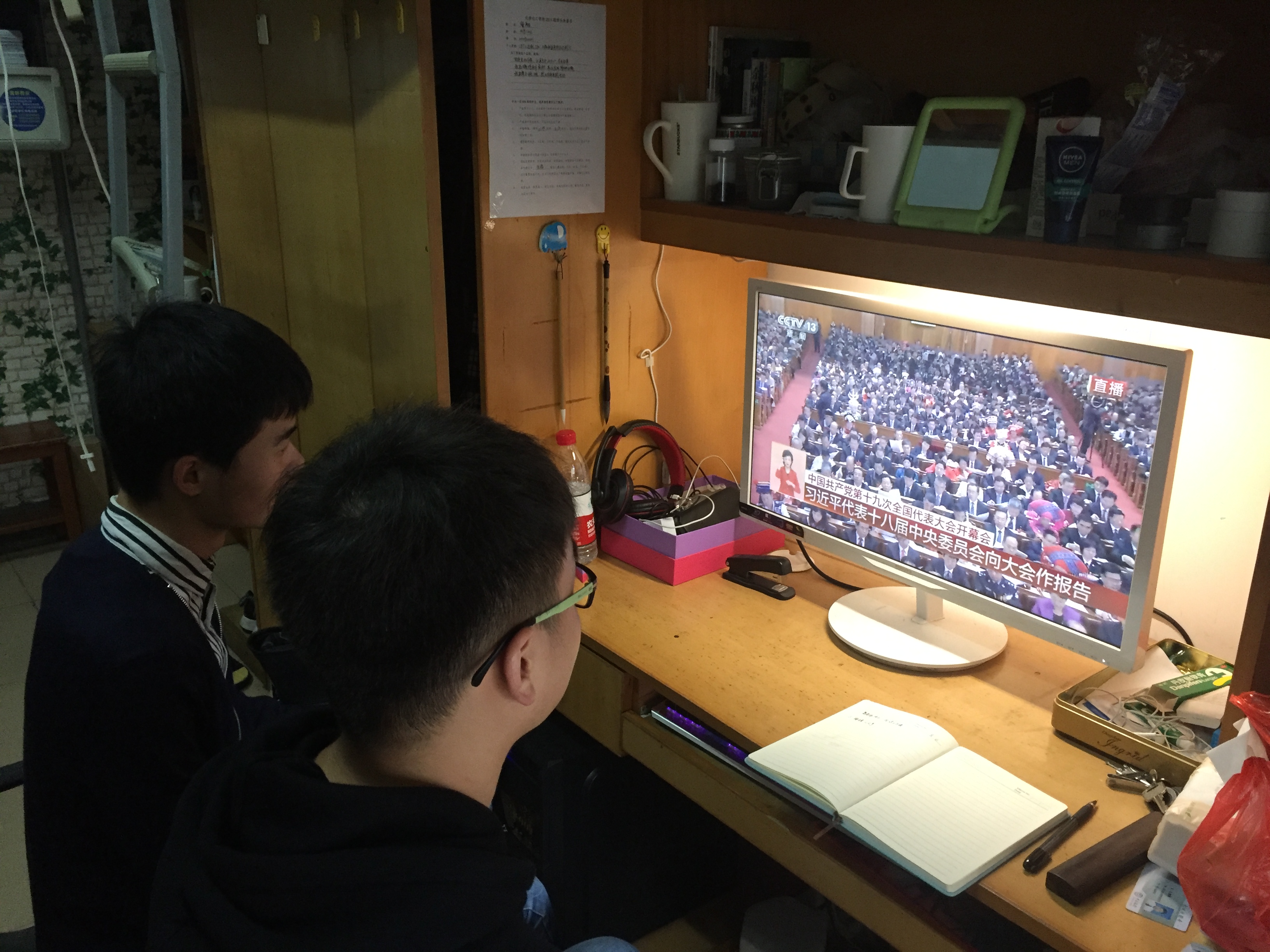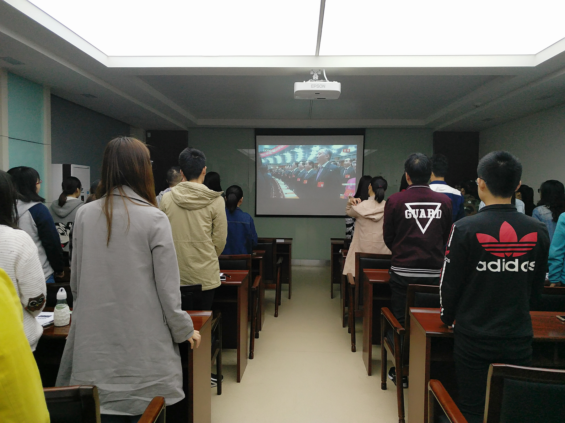 2017年10月18日,为迎接党的第十九次全国代表大会的召开,经学校统一安排,学院统一组织,电子竞技 全院师生分别在复临舍报告厅、实验室、寝室观看十九大的开幕式直播。