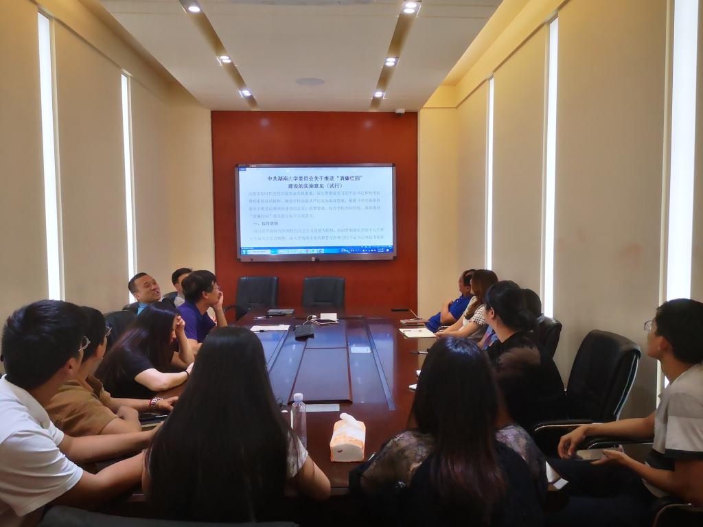 会上,学院机关党支部全体同志集体学习《中共湖南省委关于推进清廉湖南建设的意见》以及《中共湖南大学委员会关于推进 “清廉校园”建设的实施意见》的相关内容,观看《生命重于泰山——学习习近平总书记关于安全生产重要论述》电视专题片,重温习近平总书记关于安全生产重要论述。与会党员结合工作实际进行心得交流,纷纷表示要坚定理想信念,强化宗旨意识,坚守初心使命,在日常工作开展中要抓好校园安全、实验室安全,牢固树立安全发展理念,建立健全安全责任体系,构建校园安全长效机制。