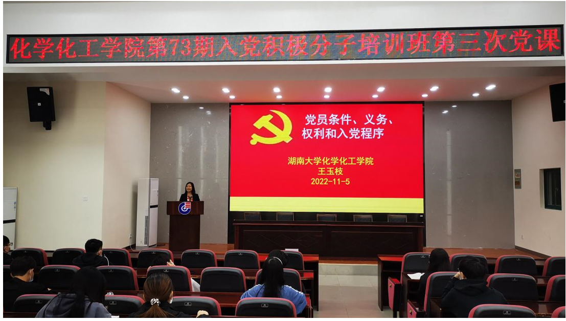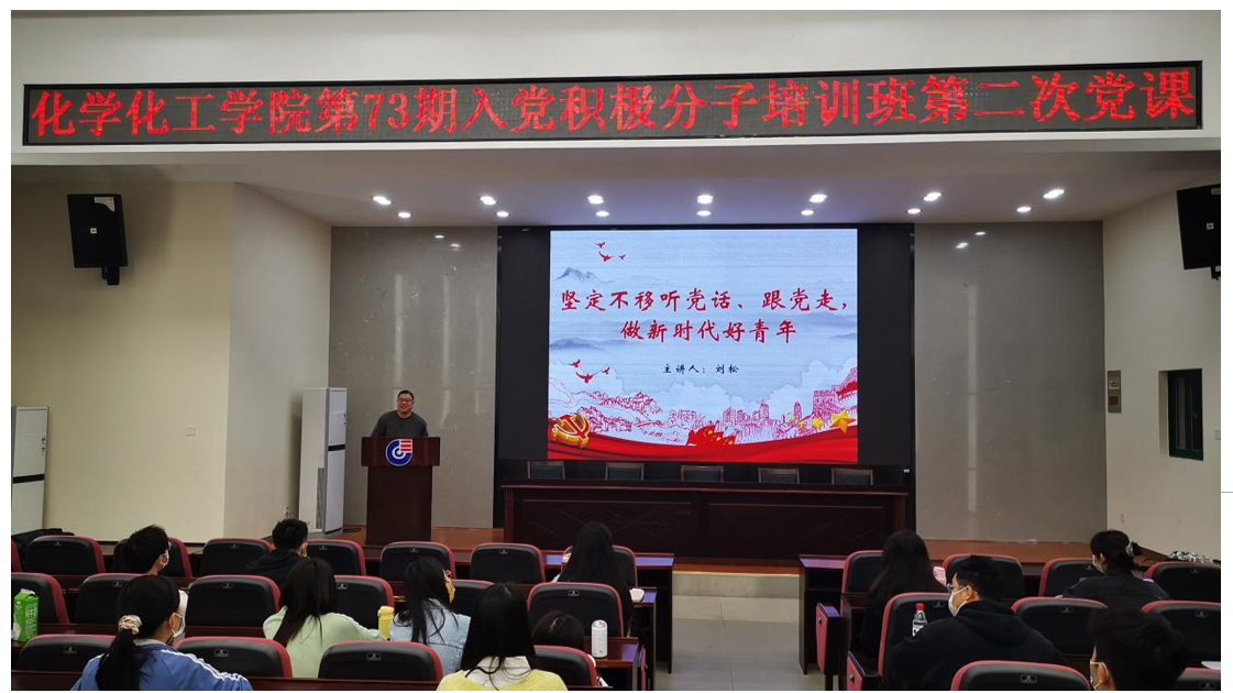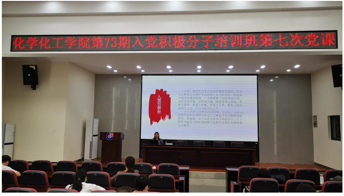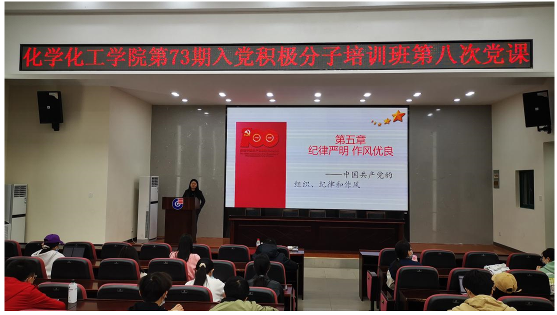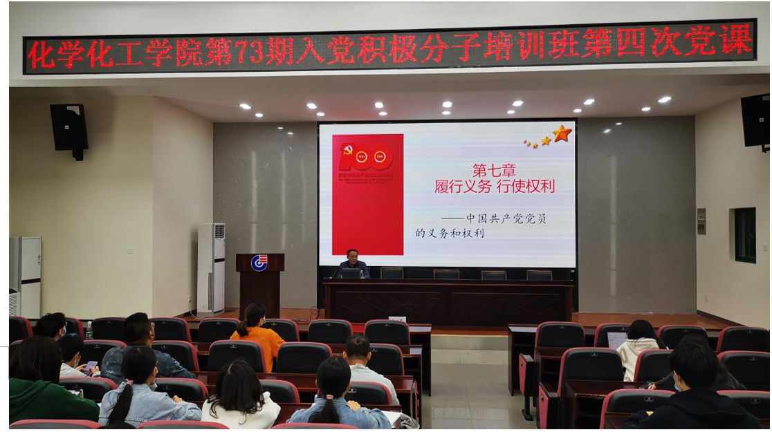 党委分党校在新化工楼D区报告厅为73期入党积极分子培训班开展了八次党课培训。
