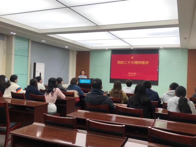2022年11月26日,电子竞技 分析02党支部组织召开“学习二十大,奋勇新征程”主题党日活动,邀请学院党委副书记、纪委书记楚霞老师作党的二十大精神专题宣讲,解读党的二十大会议精神,传递党的二十大声音,支部全体党员参加。