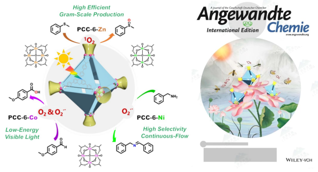今年6月,方煜课题组构建了一种基于吩噻嗪光活性基元和过渡金属簇的多孔配位笼(PCCs),在低能量可见光照射下,笼的三种金属中心调控了活性氧物种(ROS)的生成,从而模拟了酶的反应特异性。相关研究成果在国际知名期刊Angew. Chem. Int. Ed.(德国应用化学)上发表,并被选为“热点文章”(“Hot Paper”)以及内封面。方煜教授为论文主要通讯作者,湖南大学为第一通讯单位,博士研究生袁江培同学为第一作者,课题组管宗杰副教授,以及合作单位德克萨斯A&M大学林恒宇同学也给予了大力支持,被列为共同第一作者。该工作得到了中组部项目、国家自然科学基金项目以及湖南省基金项目的支持。