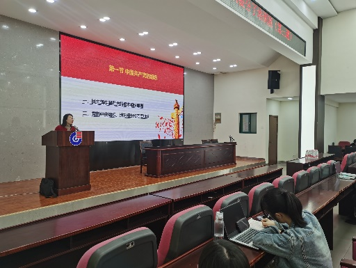 第五次党课是由沈玉婷老师在党课讲授中,老师例举了“铁人”王进喜、“全国优秀共产党员”张桂梅、“大山的女儿”黄文秀等优秀共产党员的故事。希望学员要在习近平新时代中国特色社会主义思想的指引下,以更宽广的视野、更长远的眼光来思考和把握国家未来发展面临的一系列重大战略问题。