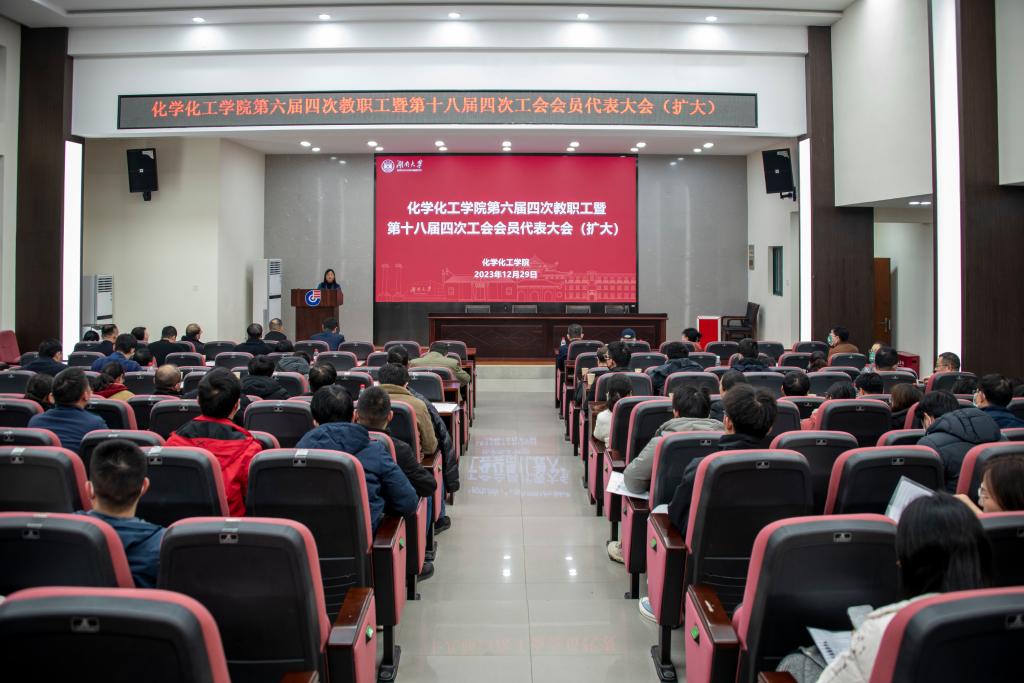 在新化工楼报告厅召开了第六届四次教职工、第十八届四次工会会员代表大会扩大会议。部分特邀代表、退休教师代表和列席学生代表及学院全体教职工参加了本次会议。会议由学院党委副书记楚霞主持。