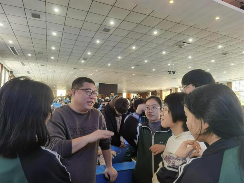 活动进行中,崔承教授作了“高考及大学生活”为题的讲座。崔教授以清华大学校训“自强不息,厚德载物”引入话题,结合自身在美国读博的经历和在国内的教学工作经历,用幽默风趣的语言为同学们讲解了如何面对高考及进入大学后应该怎么样等问题,鼓励同学们要自信,要坚持,不要躺平,进入大学要找到自己的职业规划,不断提升自身竞争力,当你确定了你想做什么,这才是最大的动力。