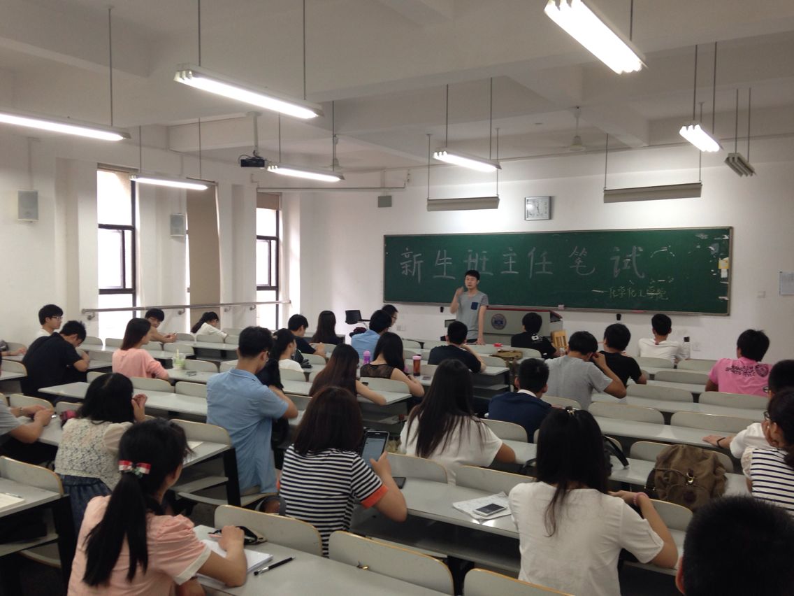 开考前,刘世明强调了新生班主任要抓住90后学生的心理特点和思考方式,对新生更好的从心理上去关注、从生活中去关怀。且本次考试自由作答要求简明扼要,抓住重点即可。之后陈老师加以补充,他希望新生班主任将会是一个和谐的大家庭,大家互相帮助,为14级新生提供更好的服务。