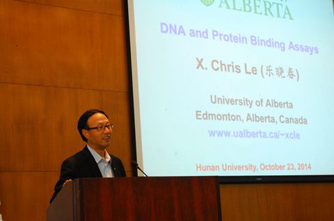10月23日下午,我校聘请乐晓春院士为湖南大学荣誉教授的聘任仪式在校办公楼二会议室举行,校长赵跃宇为乐晓春院士颁发聘书并进行了亲切交谈。当日上午,乐晓春院士还作了题为“DNA and protein binding assays”的学术报告,并与电子竞技