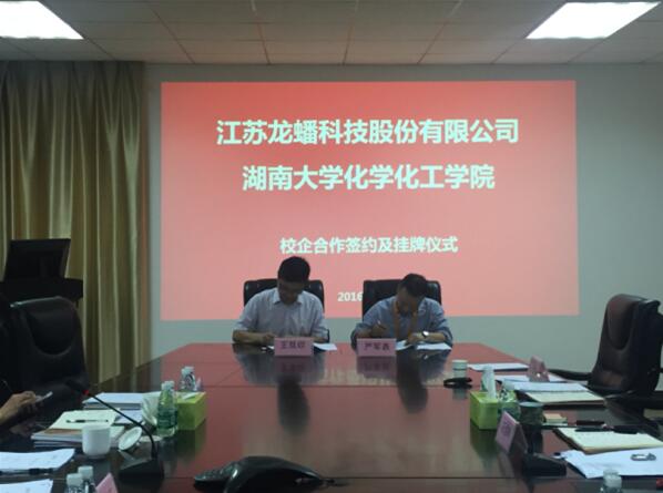 与龙蟠科技签订了校企合作协议、实习基地共建协议、奖学金设立协议,湖南大学实习教学基地在江苏龙蟠科技正式挂牌成立。