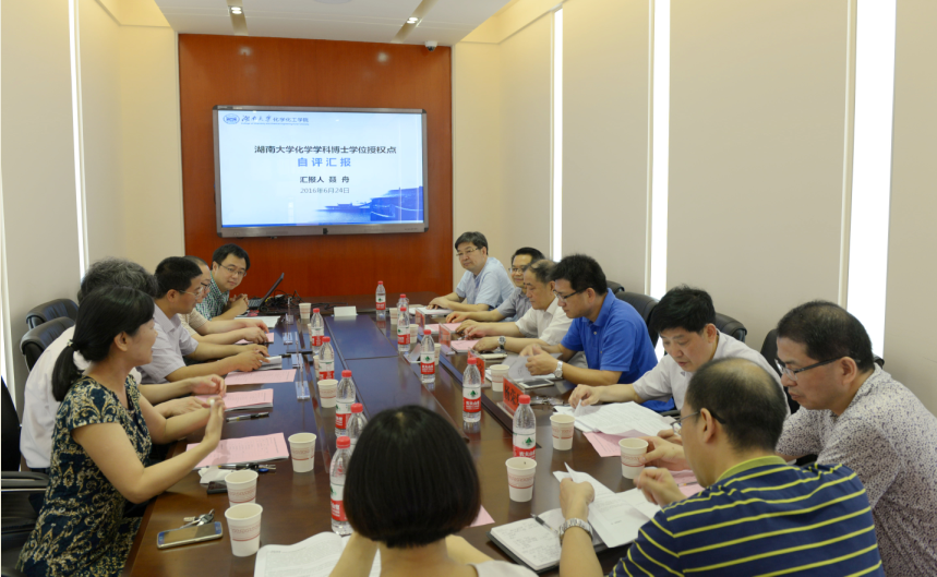 副校长曹一家教授致辞后,电子竞技 副院长聂舟教授代表化学学科学位授权点分别从培养目标、学位标准、培养方向、师资队伍、科学研究等17个二级要素向专家组汇报了学位点建设情况。专家组通过对学院实验室和支撑材料的实地考察和抽检,并与学位授权点师生和管理人员进行座谈,按照评估指标体系逐项核实后,对我校学位授权点的建设所做的努力和取得的成果给予了充分肯定,专家组一致认为,湖南大学化学学科已经在国内外具有重要影响力,引领着湖南省化学学科前进的方向,最后专家组建议,今后要继续加大学科资金投入及人才培养引进的力度,进一步推进优势学科的交叉融合,使化学学科成为培养****和具有重要国际影响力的基地。