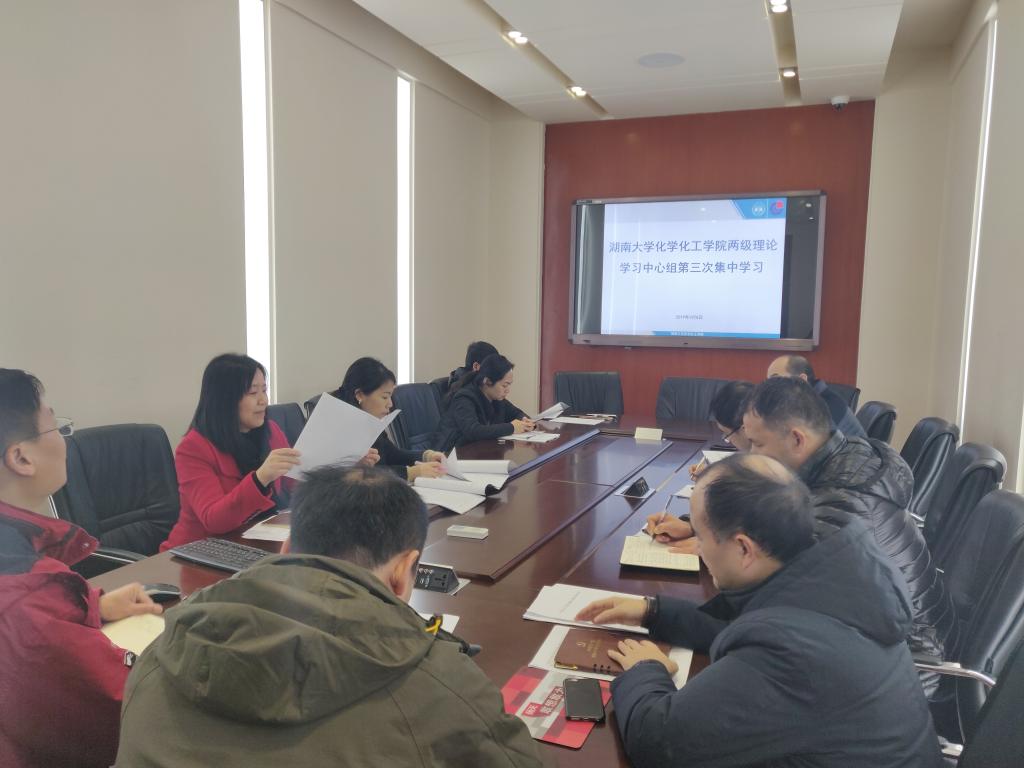 王玉枝书记首先对学校下发的《湖南大学两级理论学习中心组学习规则》进行了解读,并表示学院党委将严格按照学校要求,从思想认识、学习重点、学习形式和学习时间等方面推动学习的制度化和规范化,同时加强宣传力度,营造良好的理论学习氛围,切实提高领导干部的理论水平和工作能力,进一步加强领导班子思想政治建设。王书记同时指出学院近期将开展教职工的政治理论集中学习活动。