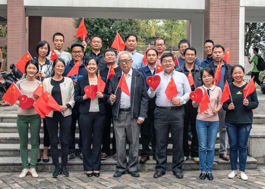 2019年8月29日新华社发布,中共中央、国务院、中央军委颁发“庆祝中华人民共和国成立70周年”纪念章。俞先生作为其中之一——中华人民共和国成立后获得国家级表彰奖励及以上荣誉并健在的人员,获得了一枚珍贵的纪念章。他说,“这是我们课题组、全体化学化工人、乃至全体湖大人的荣誉。收看七十国庆大典,我见到天安门广场上党旗、国旗、军旗一起飘扬。我觉得这三面最重要的旗帜的红色当时特别鲜艳,借用宋诗中杨万里用过的宋代口语:‘别样红’!它们象征着我们一切力量的伟大源泉!”正是因为有这样的经历和感触,俞先生才写下了这样一首国庆感怀的诗: