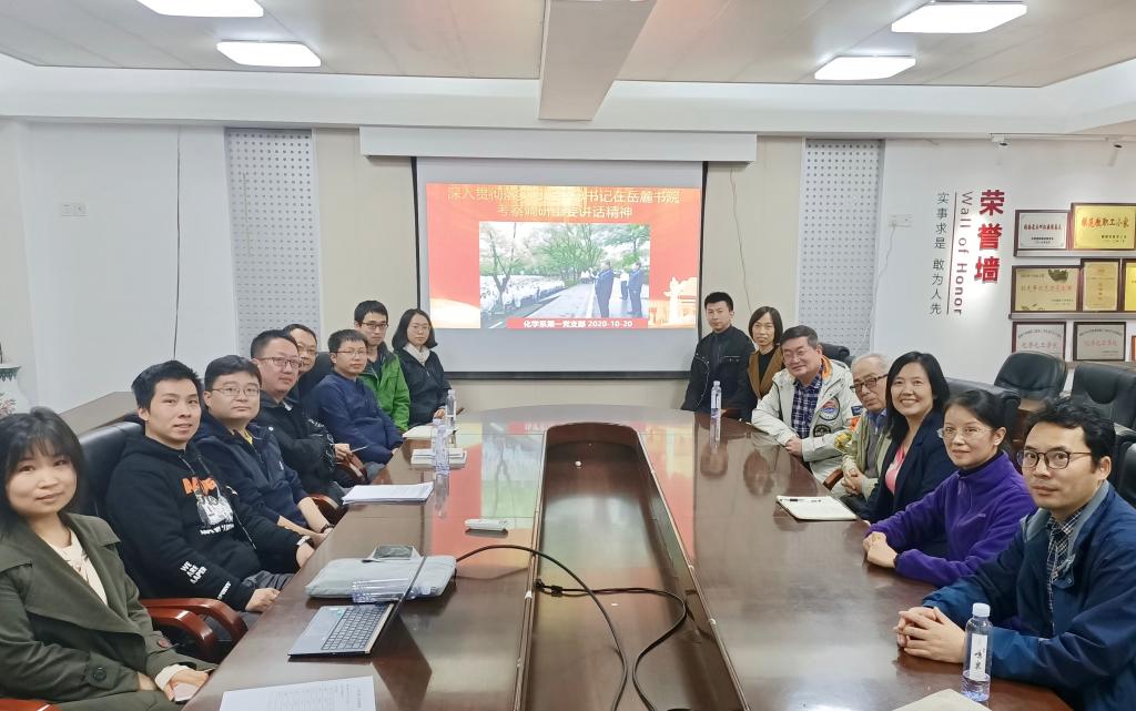 为深入领会、贯彻落实“习近平总书记考察调研湖南大学重要讲话精神”,化学系第一党支部于10月20日下午4:30在新化工楼D区204会议室召开学习研讨会,支部全体党员参加,张晓兵院长、王玉枝书记、俞汝勤院士出席。