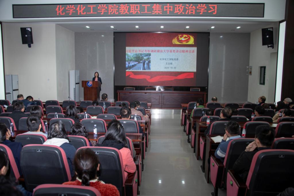 开展全院教职工政治理论学习,院党委书记王玉枝宣讲习近平总书记考察调研湖南大学重要讲话精神,全体教职工参会。