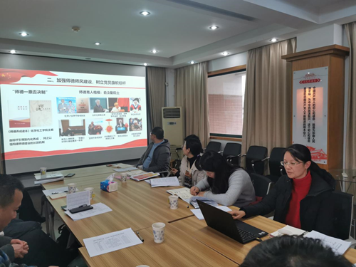 王玉枝带领大家一起学习《中国共产党基层组织选举工作条例》,《发展党员工作提示》等文件内容,并强调各党支部要按照所制定的计划,认真规范地开展好主题党日活动和师生政治理论学习,提高质量、增强实效,同时做好记录和宣传工作。王玉枝对学院下一阶段的党建工作进行了详细部署,要求各党支部认真落实党统工作,开展党支部五化建设评估,规范三会一课,详细记录支部工作手册等。